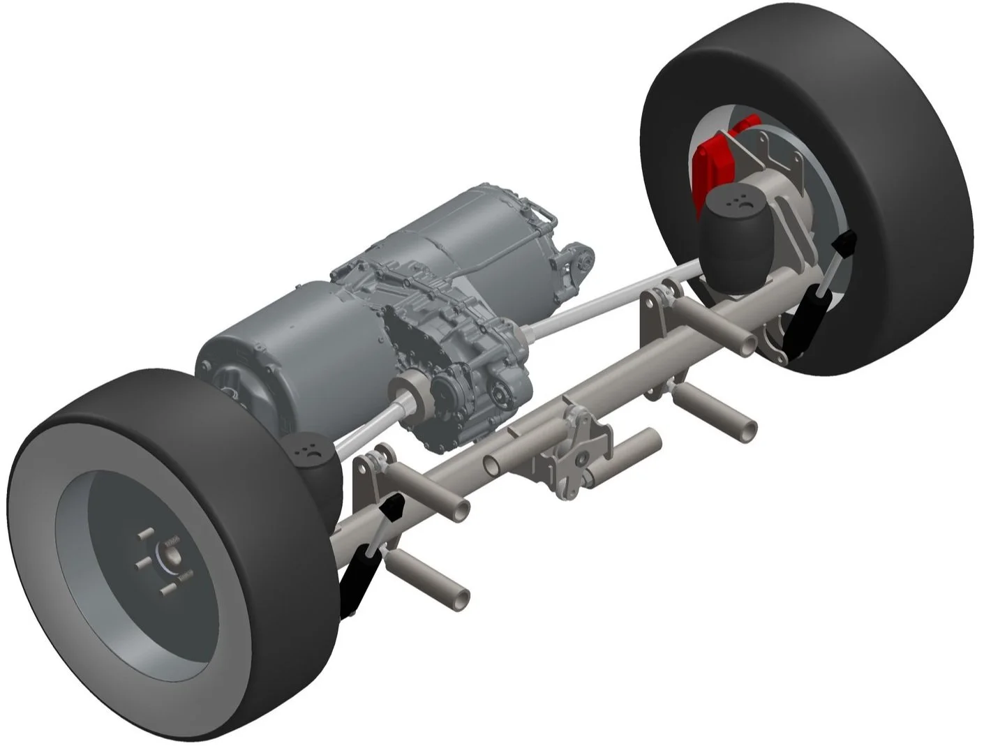 Your Tesla motor mates with a custom engineered and fabricated De-Dion axle. This axle is made of a 3 inch x 0.25 wall A400 tube and has been extensively tested for safety and durability. The axle utilizes Porsche 930 CV joints and Porsche wheel bearings for reliable transfer of power from the motor to the wheels. The De-Dion axle comes equipped with Wilwood GM Metric calipers and rotors as well as Tesla Model 3 Electric parking brakes for reliable stopping power. The axle is sprung by Slam Specialties airbags and QA1 adjustable shocks for a smooth and modern ride. Our number one priority is safety. Depending on the configuration of the base vehicle, Rovium might need to install a modern independent Front Suspension (IFS) to safely handle the weight and power of the conversion. The front suspension is determined on a case by case basis. In general terms, any vehicle built after 1970 will be equipped with a safe and reliable front suspension requiring no modifications. The frame of your vehicle is not a concern as the reaction forces of the Tesla motor act about the long axis of your vehicle as opposed to a gas engine that wants to twist the frame. As a result, the vast majority of stock vehicle frames can safely handle the torque and power of an 495 Hp LDU. As a safety precaution, Rovium will conduct a Finite Element Analysis (FEA) on the geometry of your frame to ensure it is safe.